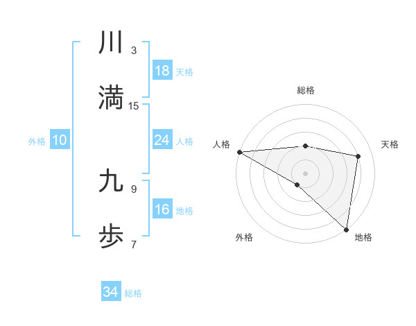 川満 九歩さんの天格は18画の4点!