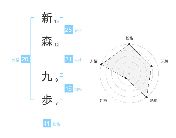 新森 九歩さんの天格は25画の4点!