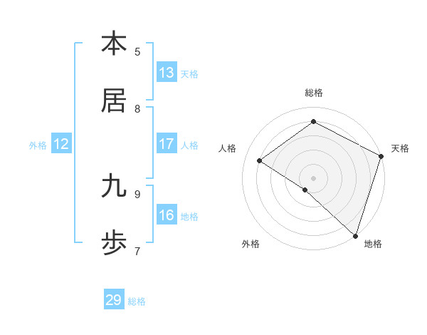 本居 九歩さんを姓名の画数から五運を鑑定