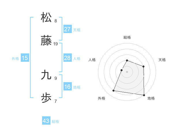 松藤 九歩さんの総格は43画の2点!