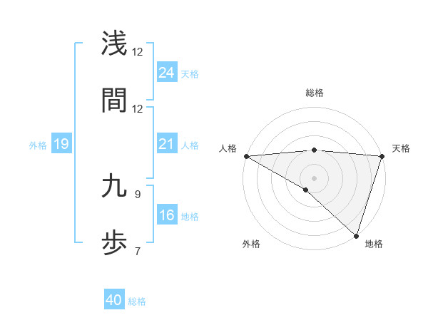浅間 九歩さんの天格は24画の5点!
