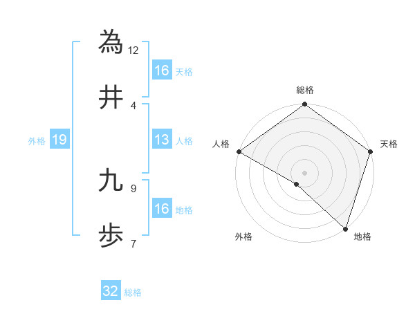 為井 九歩さんの天格は16画の5点!
