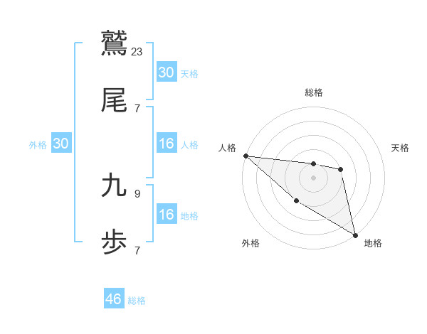 鷲尾 九歩さんの天格は30画の2点!