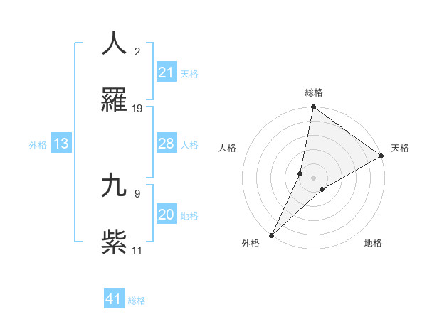人羅 九紫さんの天格は21画の5点!