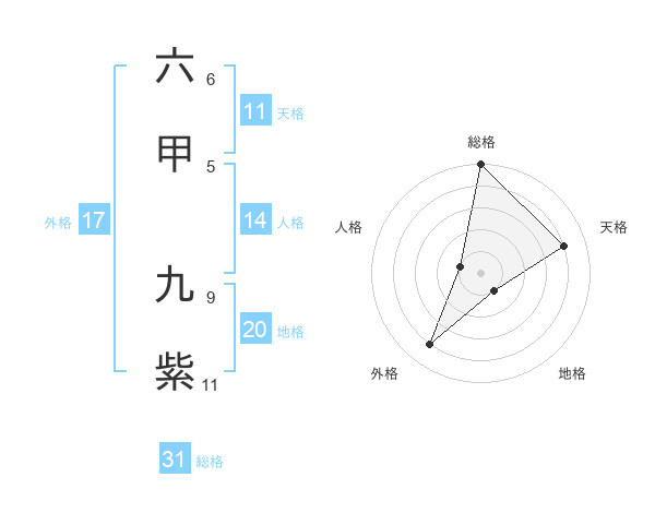 六甲 九紫さんを姓名の画数から五運を鑑定