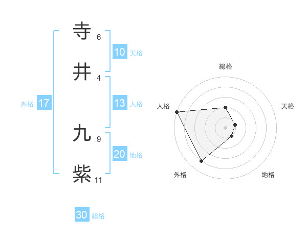 寺井 九紫さんの総格は30画の2点!
