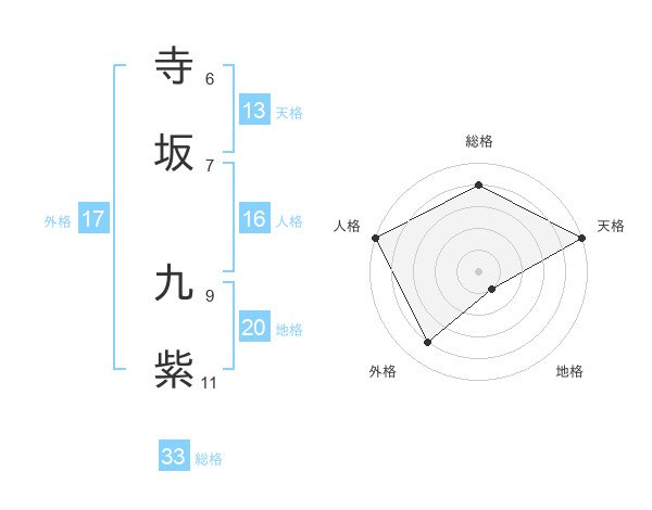 寺坂 九紫さんの総格は33画の4点!