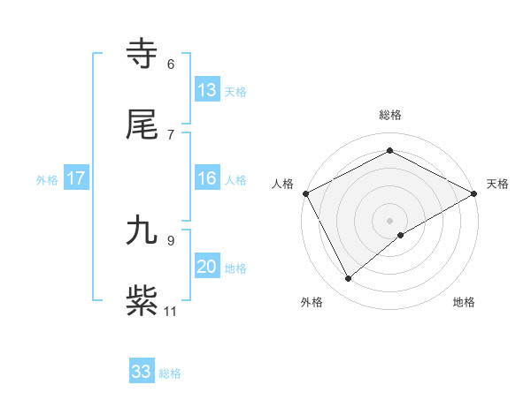 寺尾 九紫さんの天格は13画の5点!