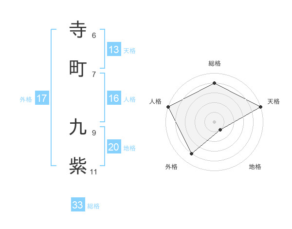 寺町 九紫さんの総格は33画の4点!