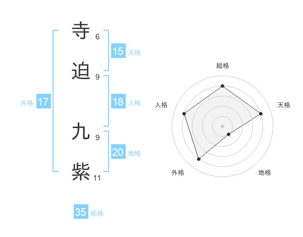 寺迫 九紫さんの地格は20画の1点!