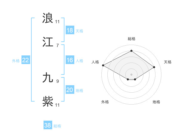 浪江 九紫さんの総格は38画の4点!