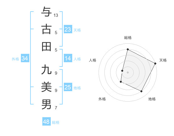 与古田 九美男さんを姓名の画数から五運を鑑定