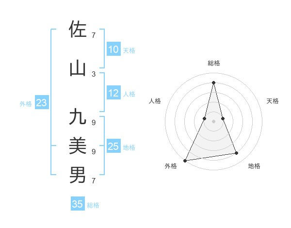佐山 九美男さんを姓名の画数から五運を鑑定