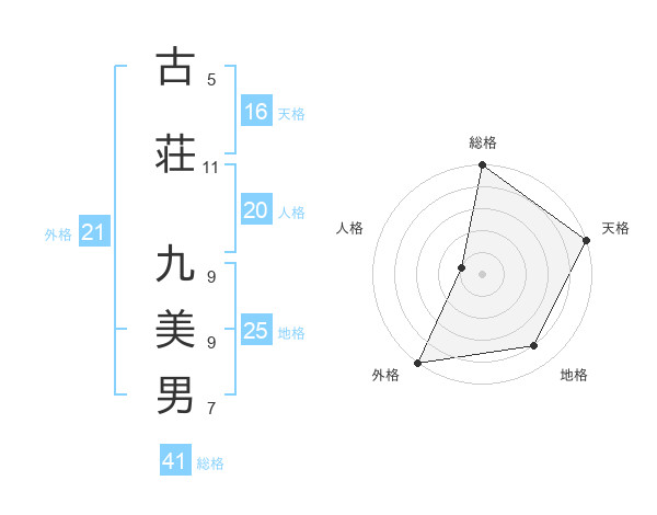 古荘 九美男さんの総格は41画の5点!