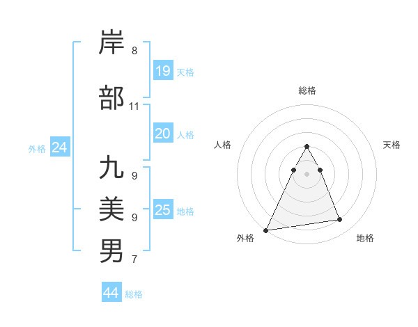 岸部 九美男さんを姓名の画数から五運を鑑定