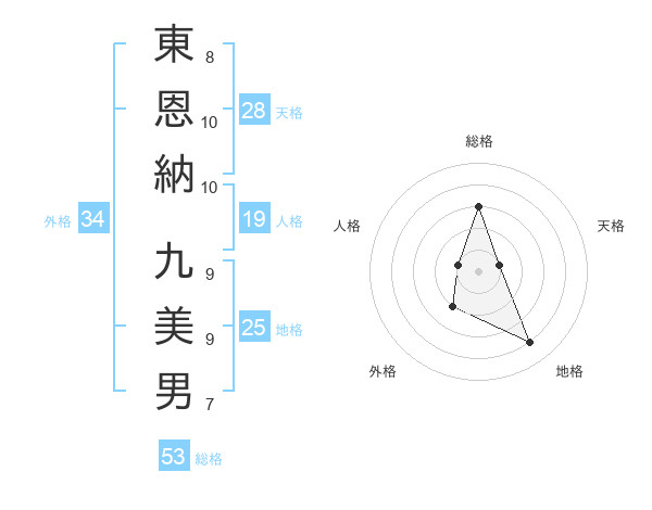 東恩納 九美男さんを姓名の画数から五運を鑑定