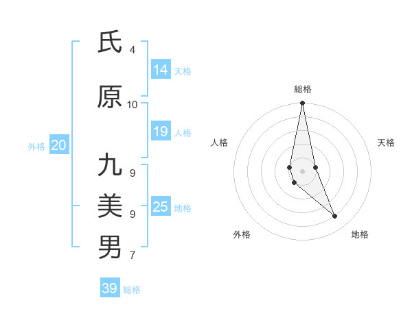 氏原 九美男さんを姓名の画数から五運を鑑定