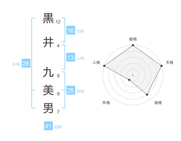 黒井 九美男さんを姓名の画数から五運を鑑定