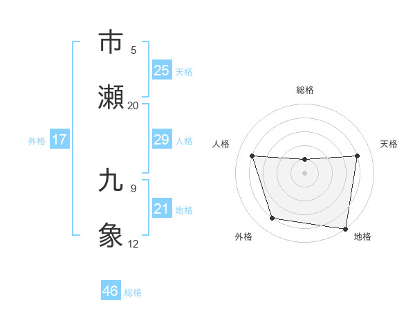 市瀬 九象さんの総格は46画の1点!