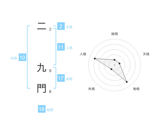 二 九門さんの総格は19画の1点!