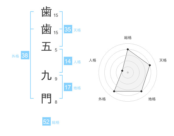 歯歯五 九門さんを姓名の画数から五運を鑑定