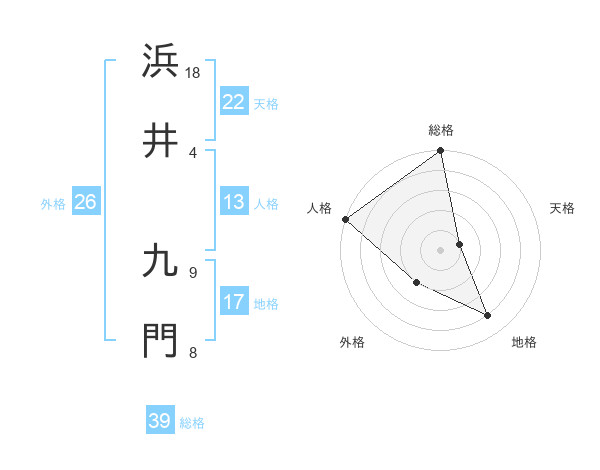 浜井 九門さんの総格は39画の5点!