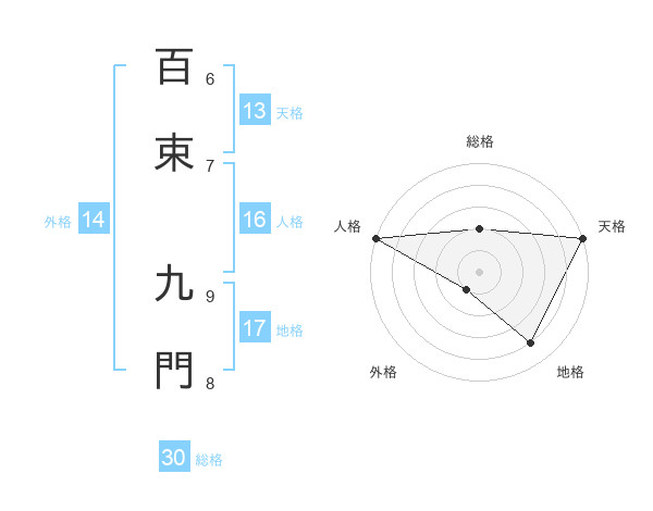 百束 九門さんの総格は30画の2点!
