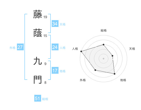 藤蔭 九門さんを姓名の画数から五運を鑑定