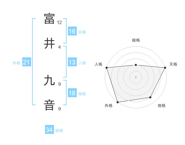 富井 九音さんの外格は21画の5点!
