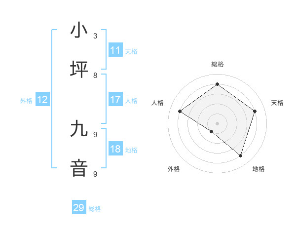 小坪 九音さんの総格は29画の4点!
