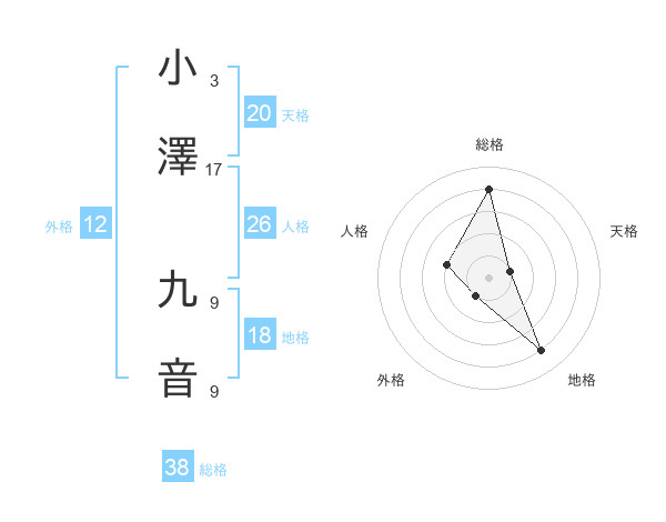小澤 九音さんの総格は38画の4点!