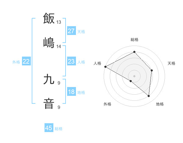 飯嶋 九音さんを姓名の画数から五運を鑑定