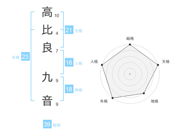 高比良 九音さんの天格は21画の5点!