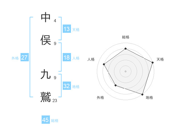 中俣 九鷲さんを姓名の画数から五運を鑑定