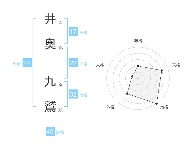 井奥 九鷲さんの地格は32画の5点!