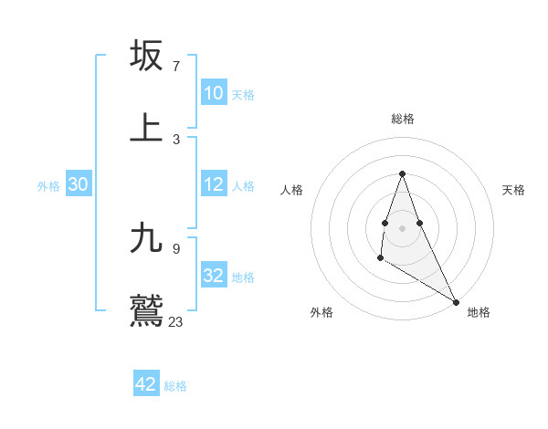 坂上 九鷲さんの総格は42画の3点!
