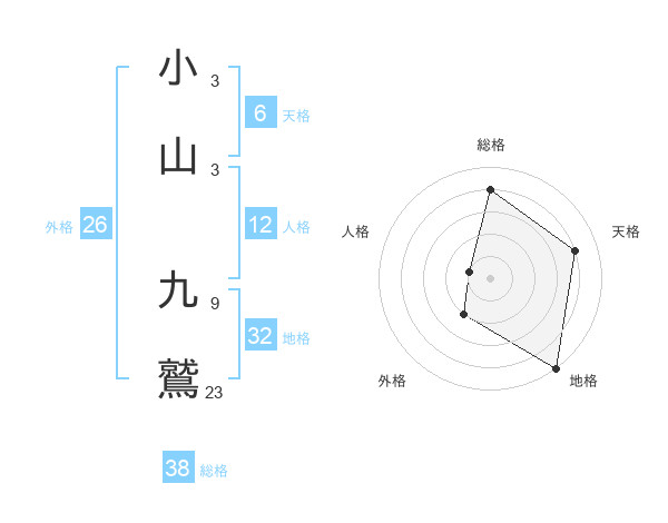 小山 九鷲さんを姓名の画数から五運を鑑定