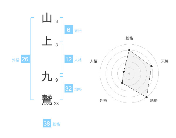 山上 九鷲さんを姓名の画数から五運を鑑定