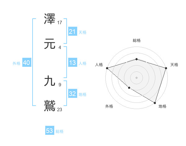 澤元 九鷲さんの地格は32画の5点!