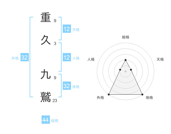 重久 九鷲さんの地格は32画の5点!