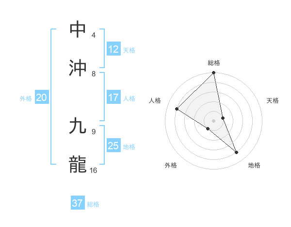 中沖 九龍さんを姓名の画数から五運を鑑定