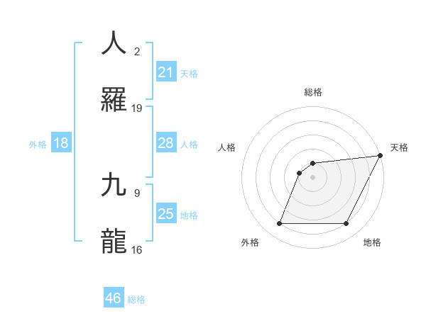 人羅 九龍さんを姓名の画数から五運を鑑定