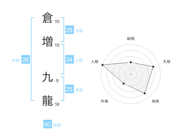 倉増 九龍さんの総格は50画の2点!