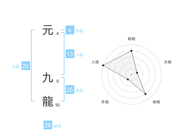 元 九龍さんの総格は29画の4点!