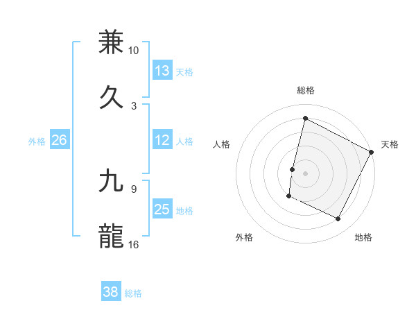 兼久 九龍さんを姓名の画数から五運を鑑定