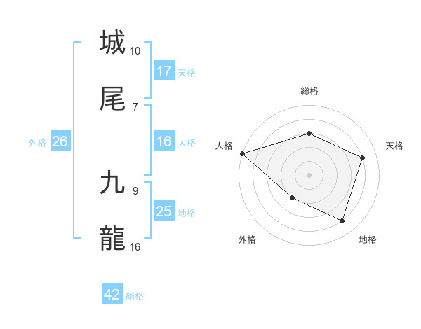 城尾 九龍さんの総格は42画の3点!