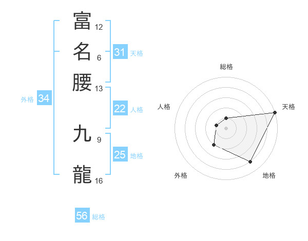 富名腰 九龍さんを姓名の画数から五運を鑑定