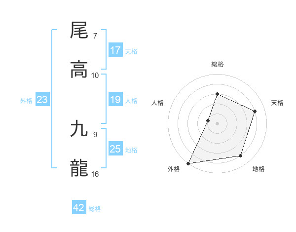 尾高 九龍さんの外格は23画の5点!