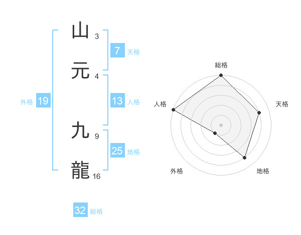山元 九龍さんの総格は32画の5点!