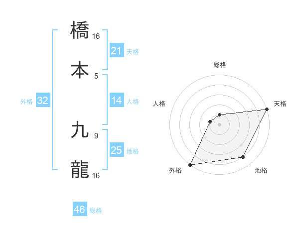 橋本 九龍さんを姓名の画数から五運を鑑定